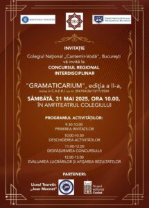 Concursul regional interdisciplinar „Gramaticarium”, organizat de Catedra de limba și literatura română a Colegiului Național „Cantemir-Vodă” din București în parteneriat cu Catedra de limba și literatura română de la Liceul teoretic „Jean Monnet” și Asociația Comitetului reprezentativ al părinților CNCV reprezintă o inițiativă educațională valoroasă, dedicată elevilor de gimnaziu și liceu, care își propune să promoveze cunoașterea și utilizarea corectă a limbii române.