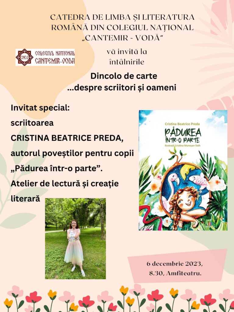 Vă așteptăm miercuri, 6 decembrie, să descoperim cartea ,,Pădurea Într-o Parte’’ – scrisă de Cristina Beatrice Preda, ilustrată de Cristina Mureșan Toth – apărută la Editura Creator – și să eliberăm împreună poveștile de la piticul cu căciulă mult prea lungă.