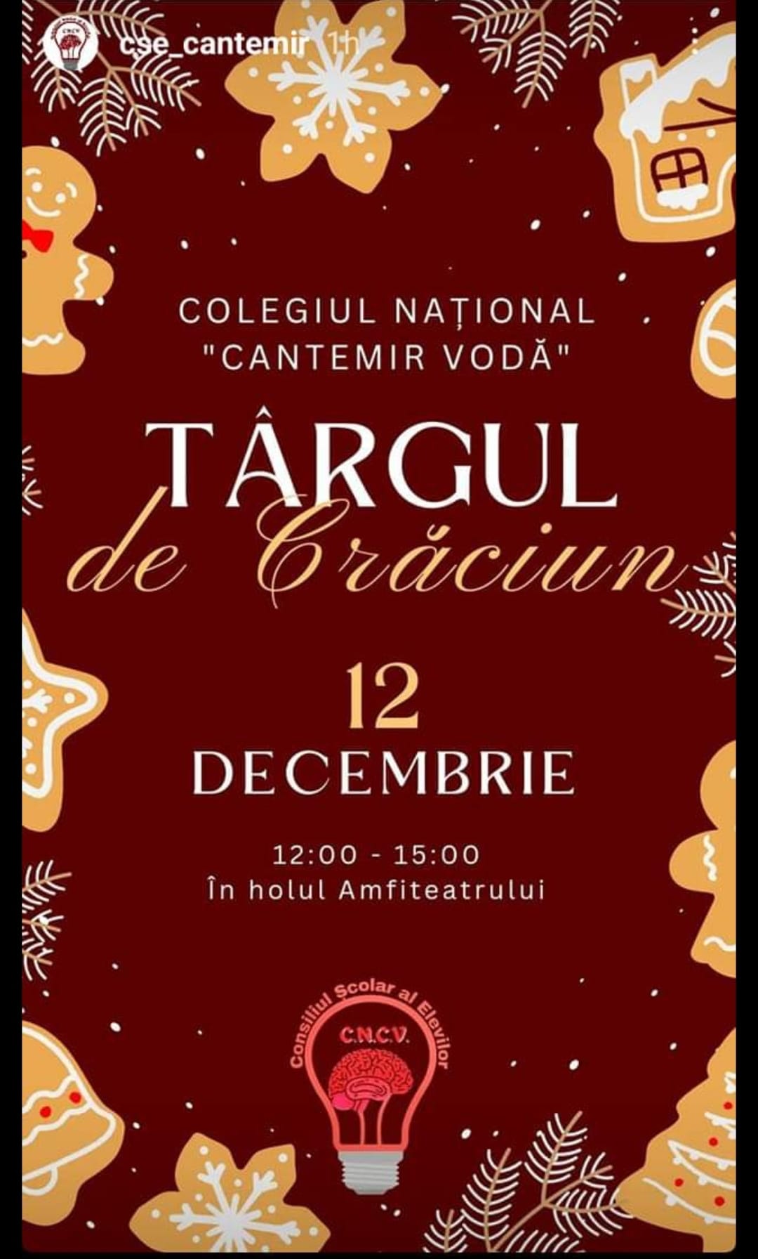 Târgul de Crăciun este organizat anual de Consiliul Școlar al Elevilor din CNCV. Cu banii strânși din vânzarea produselor artizanale proprii, elevii vor face acțiuni filantropice. Felicitări pentru inițiativă!