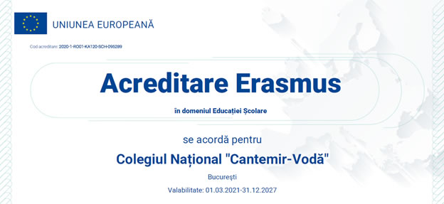 Colegiul Naţional ,,Cantemir-Vodă” este membru în Parteneriatului strategic Erasmus+ cu titlul
