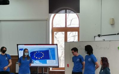 Astăzi, 2 mai 2022, ambasadorii juniori din Colegiul Național ”Cantemir-Voda” București, îndrumați de doamna profesoară Ortansa Moise, ambasador senior, au participat la o activitate desfășurată sub forma unei „cafenele publice”. Ambasadorii juniori au dezbătut pornind de la afirmațiile regăsite în manualul EPAS. Discutându-le, ambasadorii juniori au identificat valorile U.E.